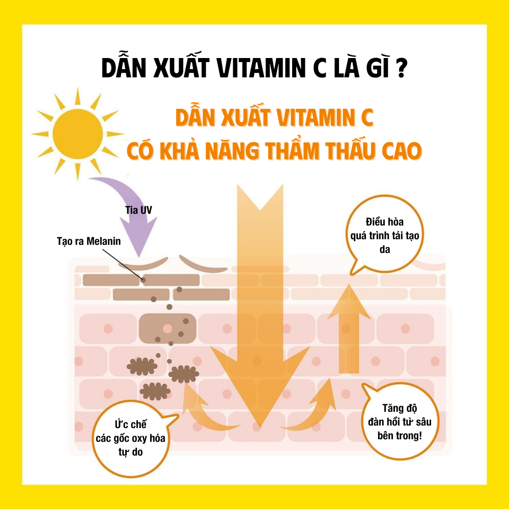 - Dẫn xuất Vitamin C (Ascorbyl Glucoside): Ổn định, thẩm thấu sâu, hỗ trợ làm sáng da, giảm thâm sạm.