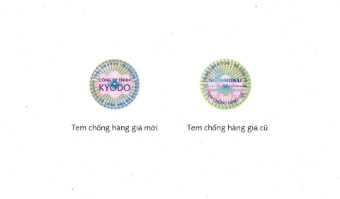 Kể từ ngày 20/7 toàn bộ các sản phẩm của MEISHOKU sẽ được dán bằng tem chống hàng giả mới có in dòng chữ " ĐƯỢC NHẬP KHẨU BỞI CTY TNHH KYODO " thay cho tem chống hàng giả cũ có in dòng chữ "MEISHOKU".