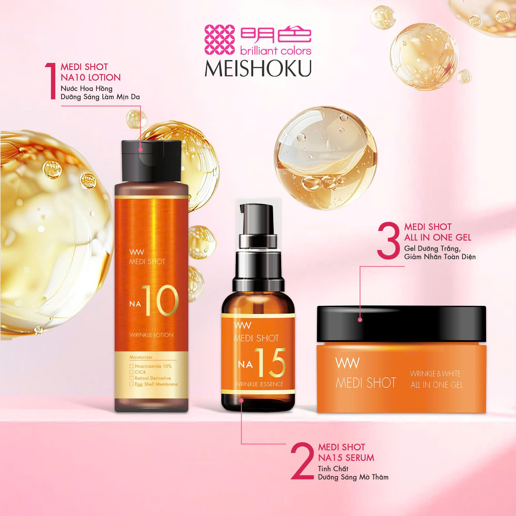 Công ty TNHH KYODO – đơn vị phân phối chính thức thương hiệu Meishoku tại Việt Nam xin thông báo về việc điều chỉnh bao bì và dung tích của sản phẩm Medi Shot All In One Gel.